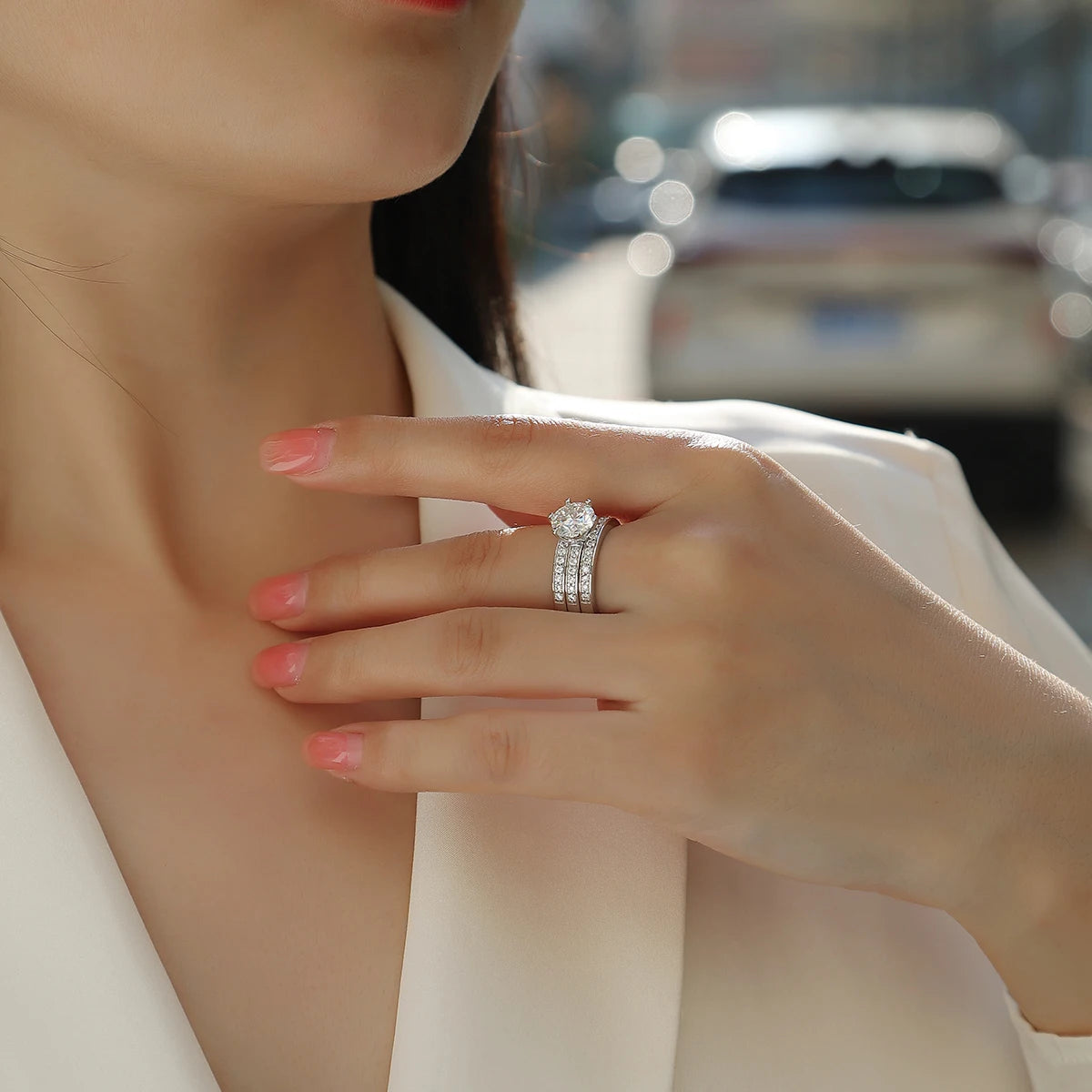 925 Sterling Silver Moissanite Rings 3 Piece Stackable Wedding Engagement Couple Ring Set with Certificate Gift for Friends